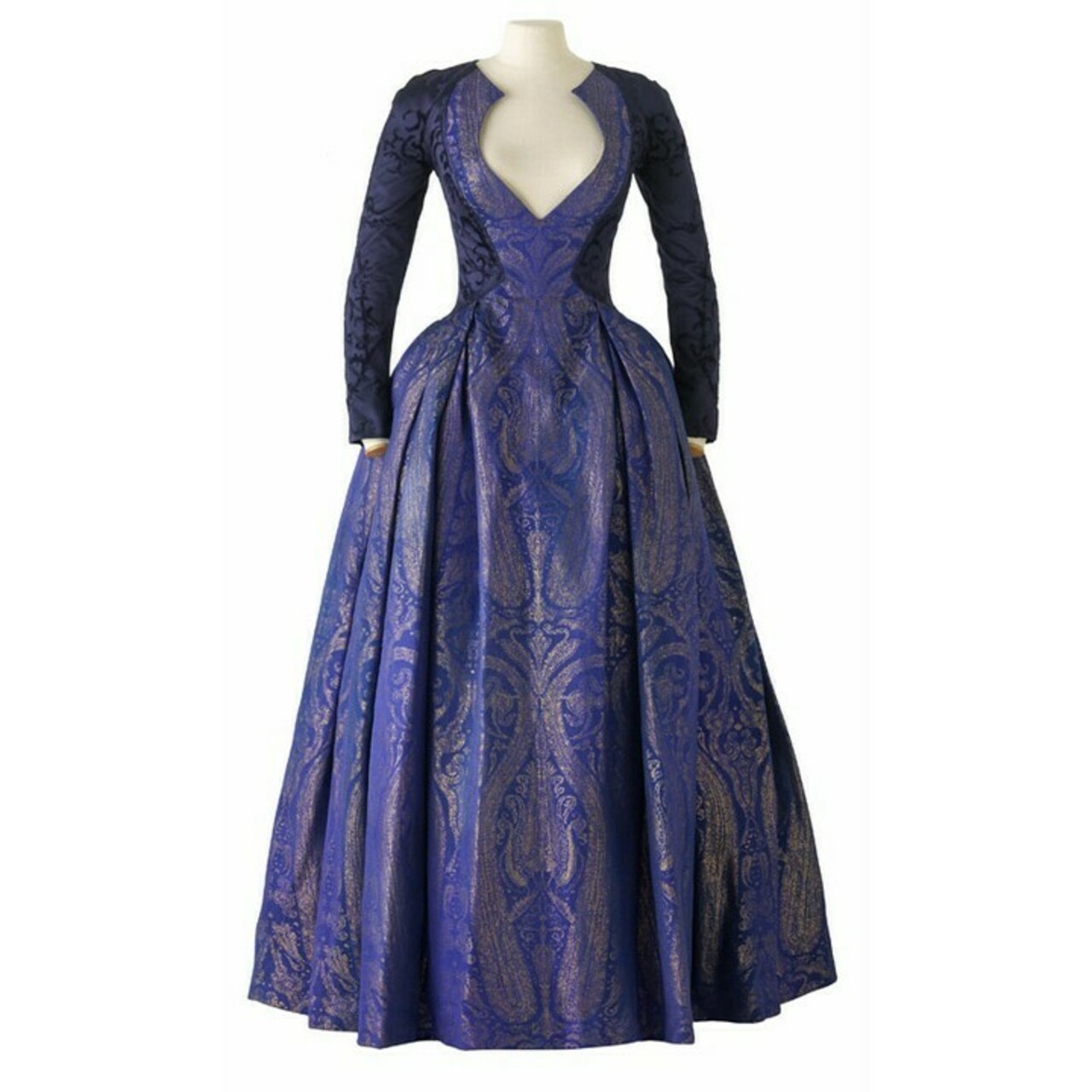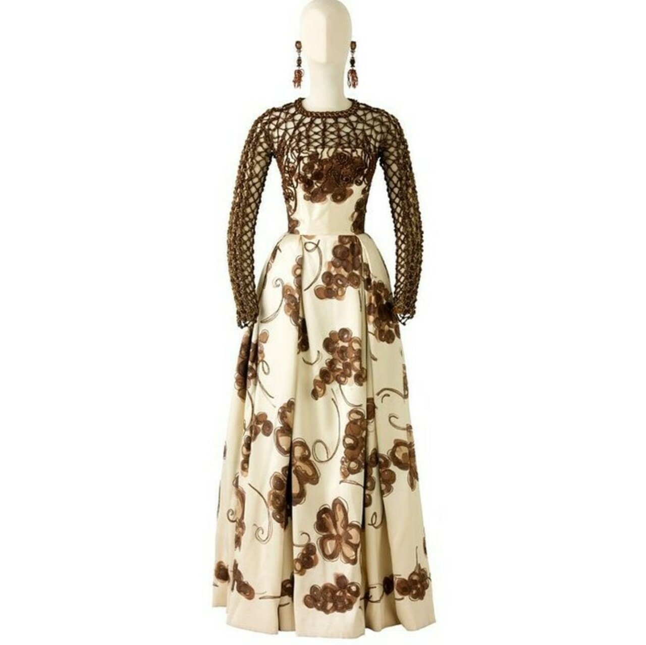 Les recherches menées dans le fonds du musée permettent une dation vers 1955 et une fabrication possible par la maison Staron de Saint-Etienne fondée en 1867. Initialement spécialisée dans la fabrication de rubans, l’entreprise se diversifia pour produire des étoffes pour la haute couture.