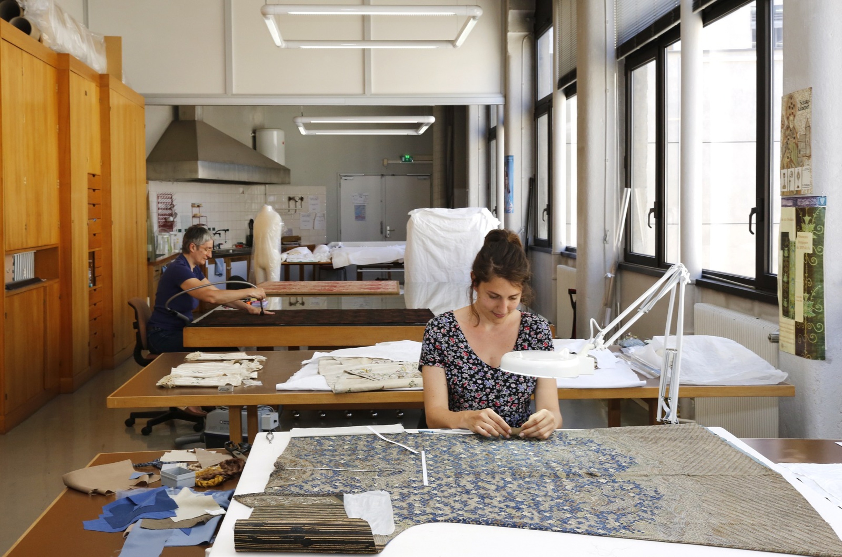 Son équipe, composée de restaurateurs du patrimoine formés à l’Institut national du patrimoine, veille aux conditions optimales de conservation et d’exposition des œuvres au sein des espaces et gère la restauration des collections. Leur rôle de conseil et de prescripteur en matière de conservation ou de présentation des œuvres fait de l’atelier une référence internationale dans le domaine de la restauration. Plusieurs futures générations de restaurateurs du patrimoine spécialisés en textile ont été formés en son sein.