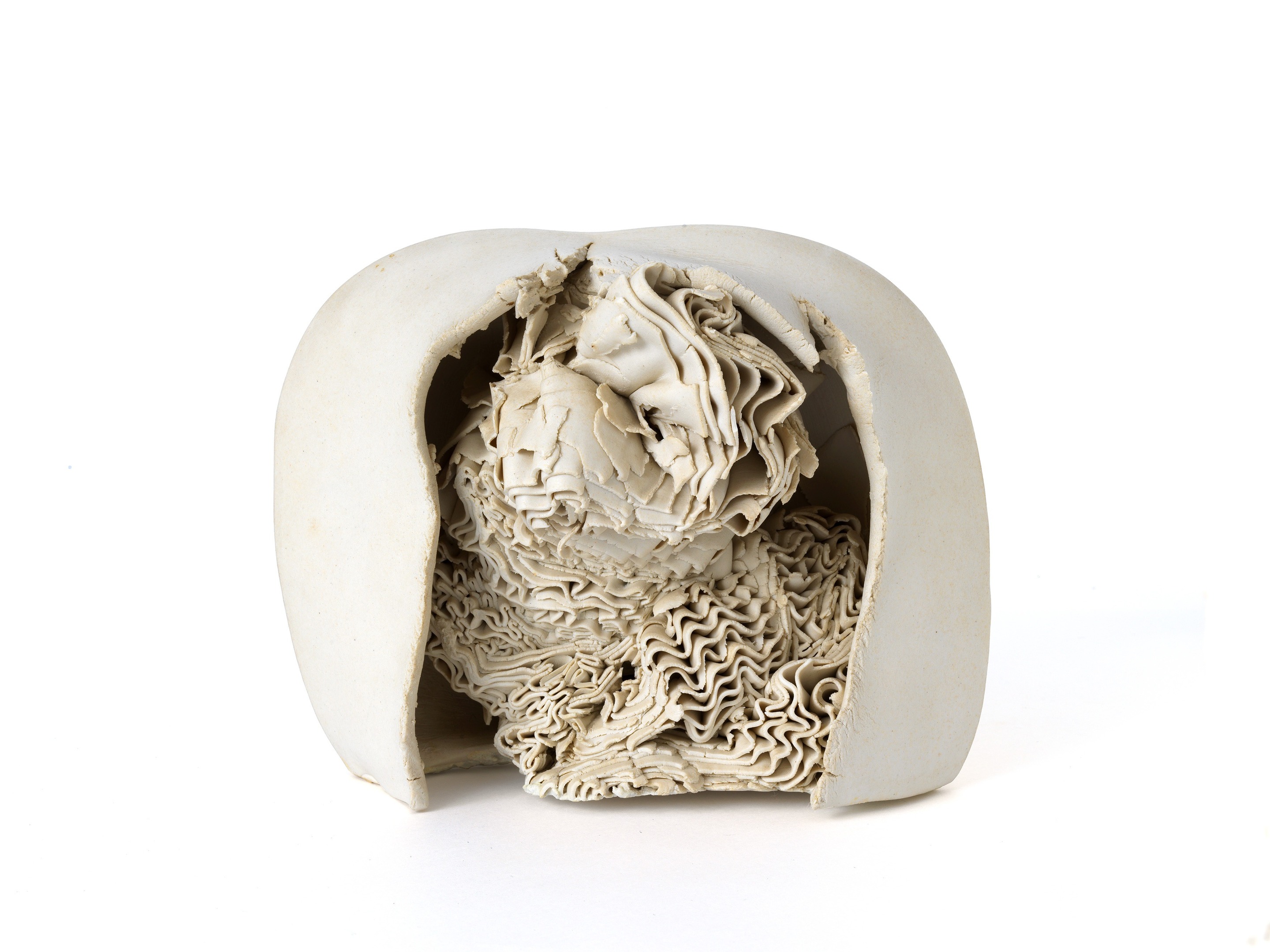 Liée au développement de la porcelaine-papier, la céramique contemporaine intègre l’esthétique et les formes du matériau textile dans l’élaboration d’un répertoire en terre. Dernières acquisitions pour le musée, les « textiles-porcelaines » de Nicole Giroud et de Daniela Schlagenhauf recherchent, par l’emploi direct ou indirect de tissu dans le processus de fabrication, à traduire les mouvements d’un textile, comme les plis et replis voire les armures