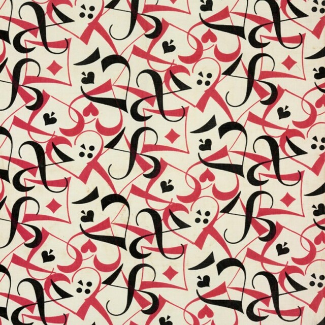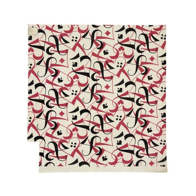À travers le tissu imprimé, il dépasse les limites imposées du format d’une feuille de papier et étend ses motifs à des surfaces pouvant se dérouler à l’infini pour les besoins de la mode et de la décoration. Ses modèles d’impression textile préversent toutes les caractéristiques de la gravure et de la typographie, épurant les lignes, entremêlant dans un rapport continu les formes calligraphiées.
