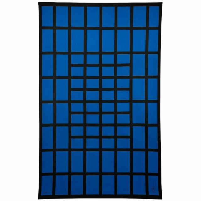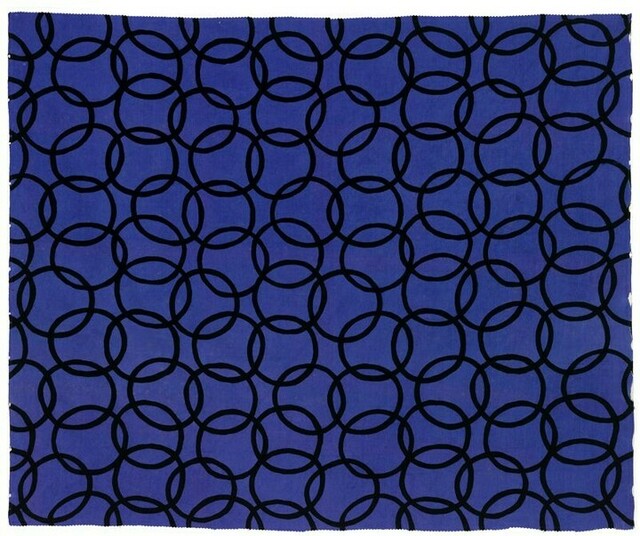 Ses compositions conjuguent ainsi, dans un parfait équilibre, les réseaux de lignes et de couleurs, de pleins et de vides, sans toujours laisser distinguer au premier regard, la répétition du motif.