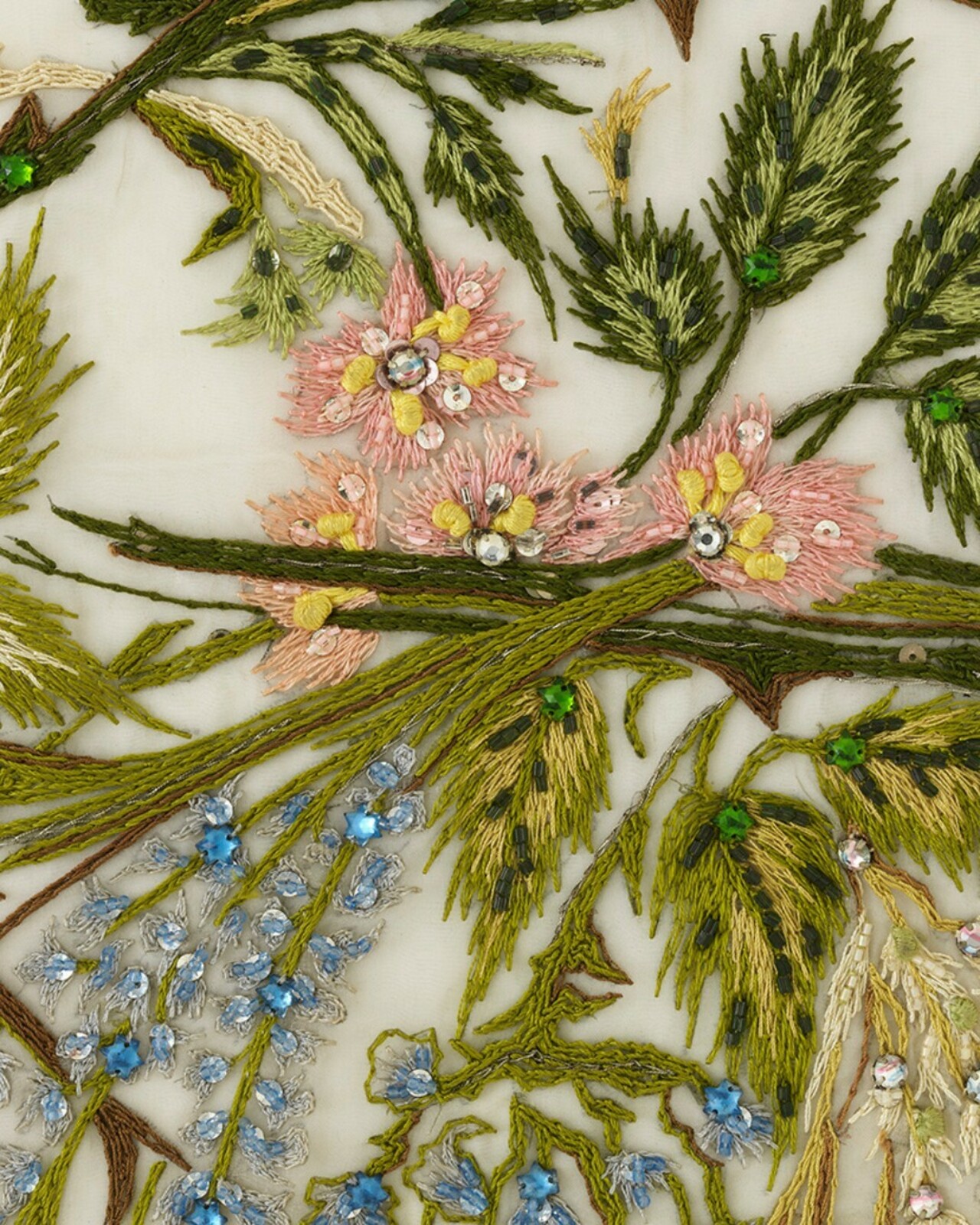 En écho avec les costumes anciens, les textiles de tradition locale et les ensembles extra-occidentaux conservés dans la collection du musée, cet ensemble est le reflet d’une époque, du savoir-faire français, tant dans le processus créatif que dans son mode de confection artisanal et en petite série.