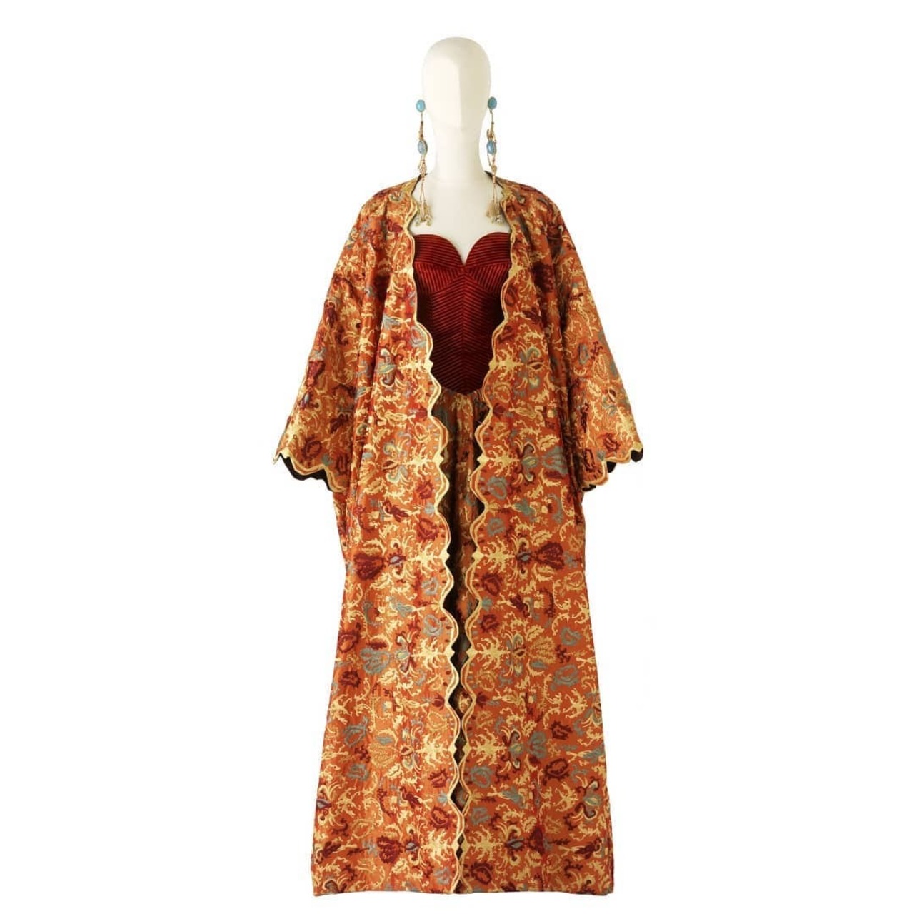 Les recherches menées dans le fonds du musée permettent une dation vers 1955 et une fabrication possible par la maison Staron de Saint-Etienne fondée en 1867. Initialement spécialisée dans la fabrication de rubans, l’entreprise se diversifia pour produire des étoffes pour la haute couture.