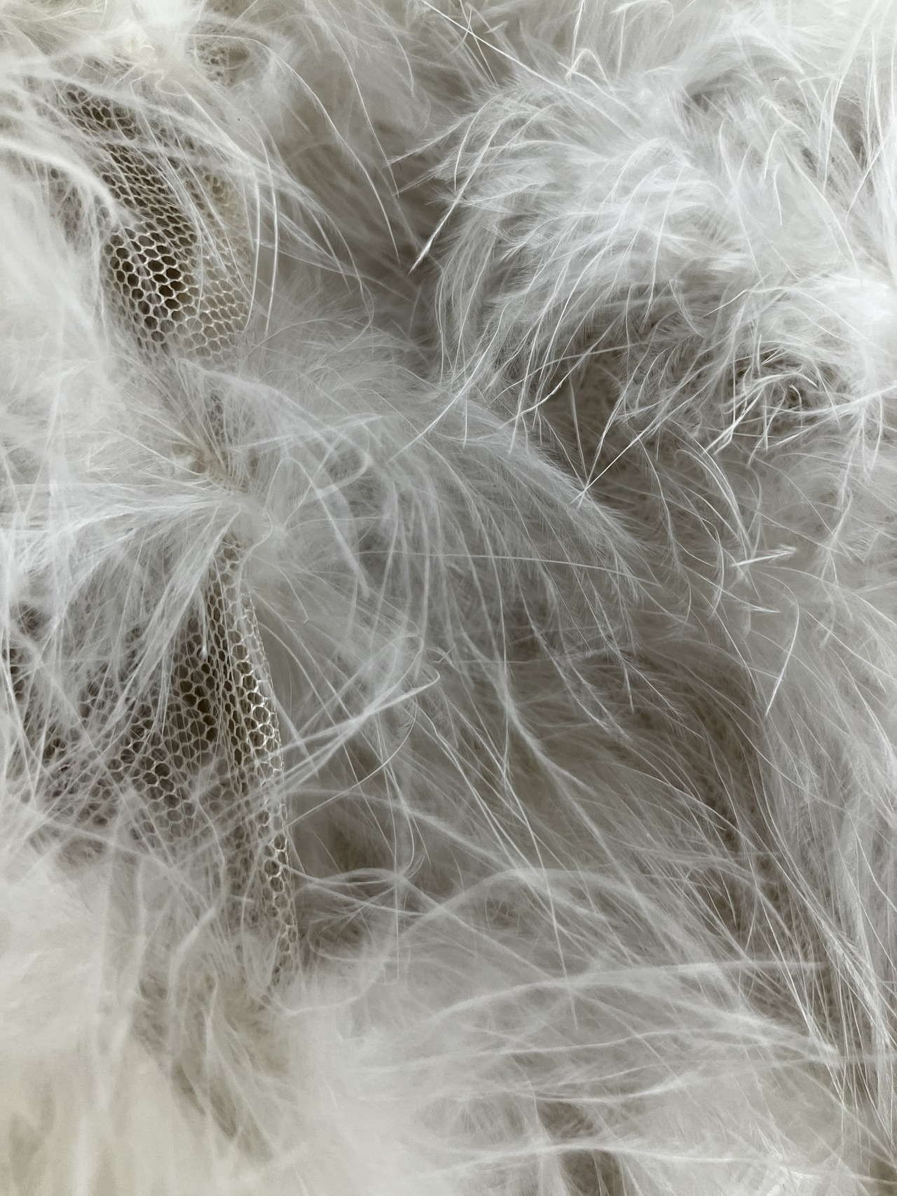 Cette robe a pu être réalisée pour un bal costumé. Elle se compose d’un bustier à fines bretelles, orné de strass et de perles brodés donnant l’illusion d’un plumage scintillant. La jupe ample est garnie de plumes montées sur du tulle.