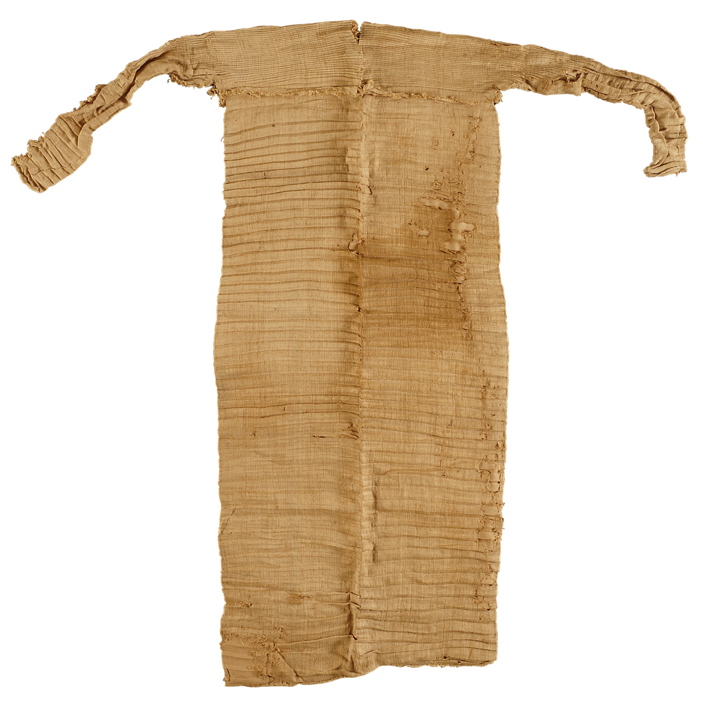 Cette tunique est un témoignage exceptionnel des pratiques funéraires de l’époque pharaonique. Le lieu de découverte de cette pièce n’est pas connu mais, par analogie avec d’autres exemples similaires, elle proviendrait d’une tombe féminine en Egypte, durant la Ve dynastie.