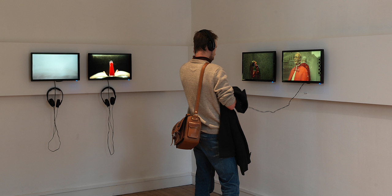 Virile, 2013. Justine Pluvinage a réalisé de nombreux films en adoptant apparemment le format documentaire. Du mariage de sa cousine aux difficultés qu’un couple rencontre après un grave accident, voyeurisme et étrange se mêlent. En 2012, elle réalise avec Anaïs Delmoitiez, une série de films intitulée Mirifique. Plans fixes sur des scènes ordinaires ou incongrues, les séquences, courtes, apparaissent comme autant de fragments de réalité, montrés sous la forme de boucles de quelques minutes ou quelques secondes. Ses vidéos ne proposent pourtant pas un récit : les plans sont montrés tels quels, sans montage. Le point de vue oscille entre effet de réel et onirisme, entre tranche de temps observé et narration. Pour la Biennale de Lyon, Justine Pluvinage propose une installation rythmée d’espaces vides et d’images, un paysage dans lequel le visiteur est libre d’agencer sa lecture comme il le souhaite. Le montage, absent des vidéos, se fait en réalité dans l’espace d’exposition, créant ainsi des narrations libres en fonction de l’endroit où le regard se pose. Dans ces images parfois intimes, Justine Pluvinage joue des disjonctions entre sexe et genre en refusant tout rapport moral au corps et à la personne. Justine Pluvinage est née en 1983 à Roubaix. Elle vit et travaille à Lille.