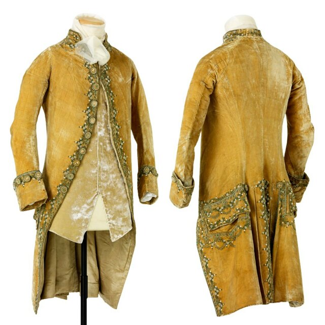 Lorsque la veste du costume masculin, perd ses manches vers 1720, elle devient gilet, composant avec l’habit et la culotte, l’habit à la française.