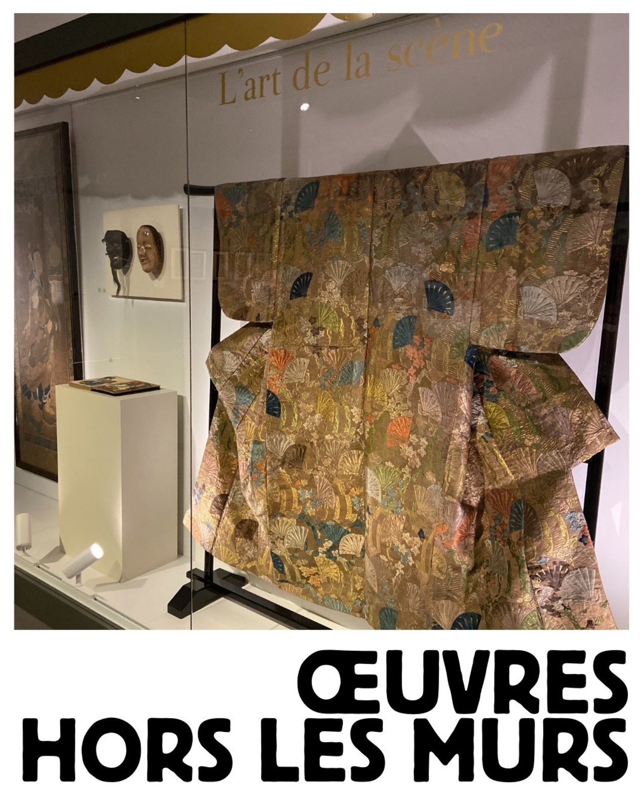 Pour explorer l’art au pays du Soleil-Levant, le musée des Tissus et des Arts décoratifs a prêté 69 pièces issues de ses collections japonaises tant textile qu’objets d’art : Netsuké, étuis à pipe, tsuba, katagami, kakemo et un somptueux kimono qui a été restauré pour l’occasion.